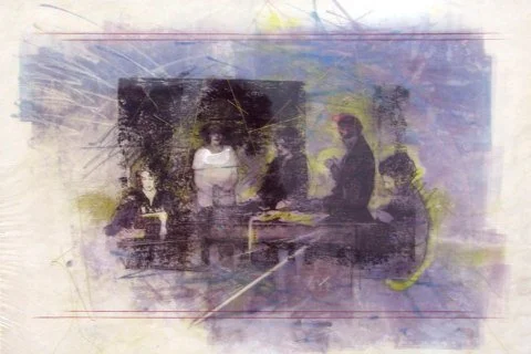 Jackie Nach works in oils or mixed media, describing the contributions both fractured lives and times the 20th century will be remembered for. Alternatively, non-toxic solar plate lithography and Gum Arabic lithography enable her to recreate the illusive images from original photographs of a bygone era, Europe, circa 1926-1932. Hand embellishment brings a personal vocabulary, depth of perspective and a distance of perception from the point of view of another generation. Hand made papers and used sheets that people had slept and dreamed on, propels her inspiration. Metaphors for racism abound. Wire coat hangars, wooden clothes pegs and safety pins, amongst others items are respectfully recognized for the brilliant inventions they are, but ultimately scorned and discarded.
